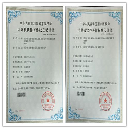 經中華人民共和國國家版權局考證,根據《中華人民共和國計算機軟件保護條例》和《計算機軟件著作權登記辦法》的規定,四川省安普瑞自動化設備有限公司,被認定為軟件——“帶式輸送機數據采集平臺V1.0”和“CNG數據采集平臺軟件V1.0”的法定著作權人,并于2016年2月03日和1月28日被正式授予《中華人民共和國國家版權局計算機軟件著作權登記證書》,登記號為2016SR026269和2016SR020541。其版權將得到“中國版權保護中心”的有效保護。